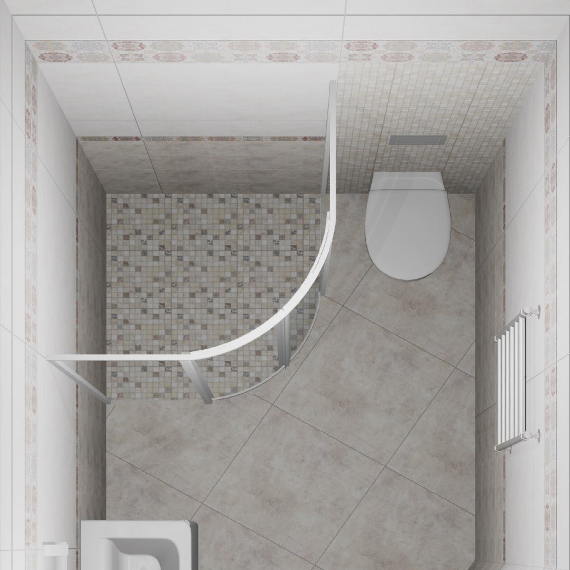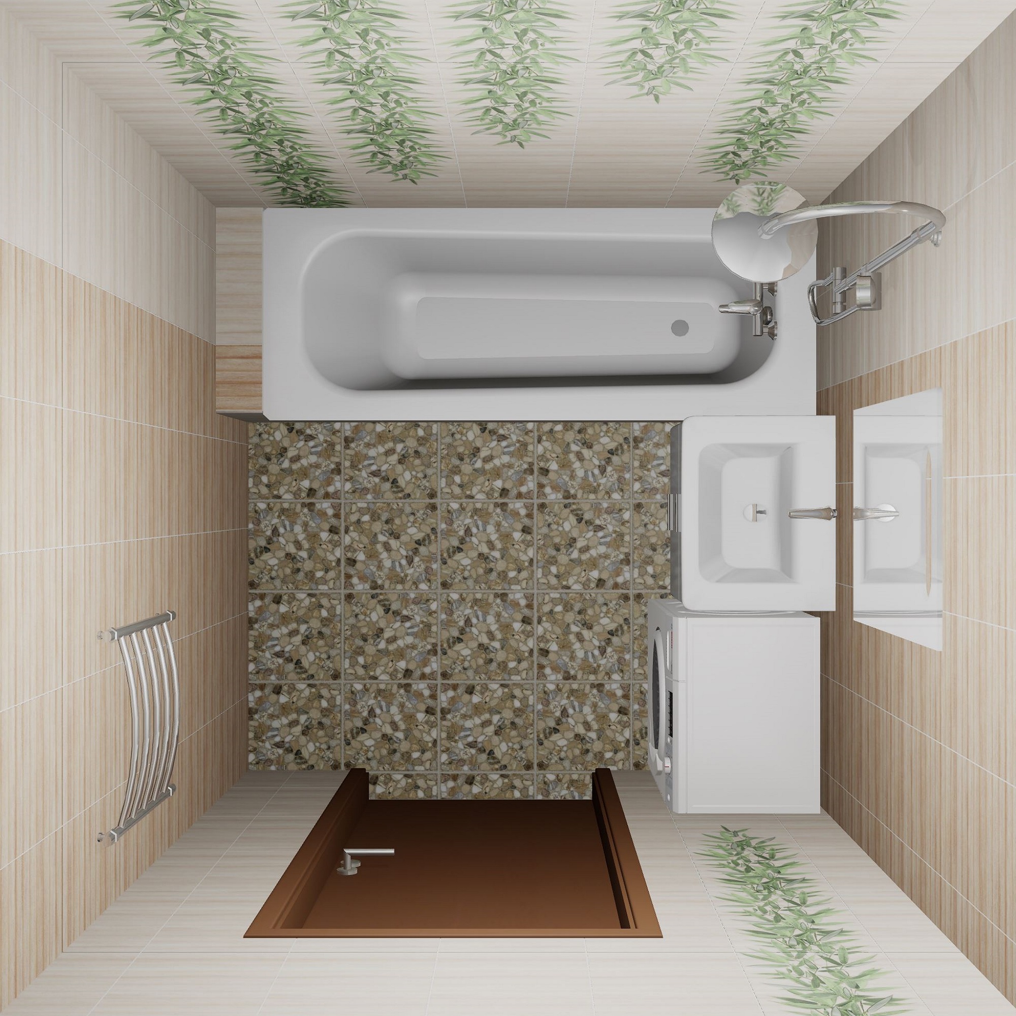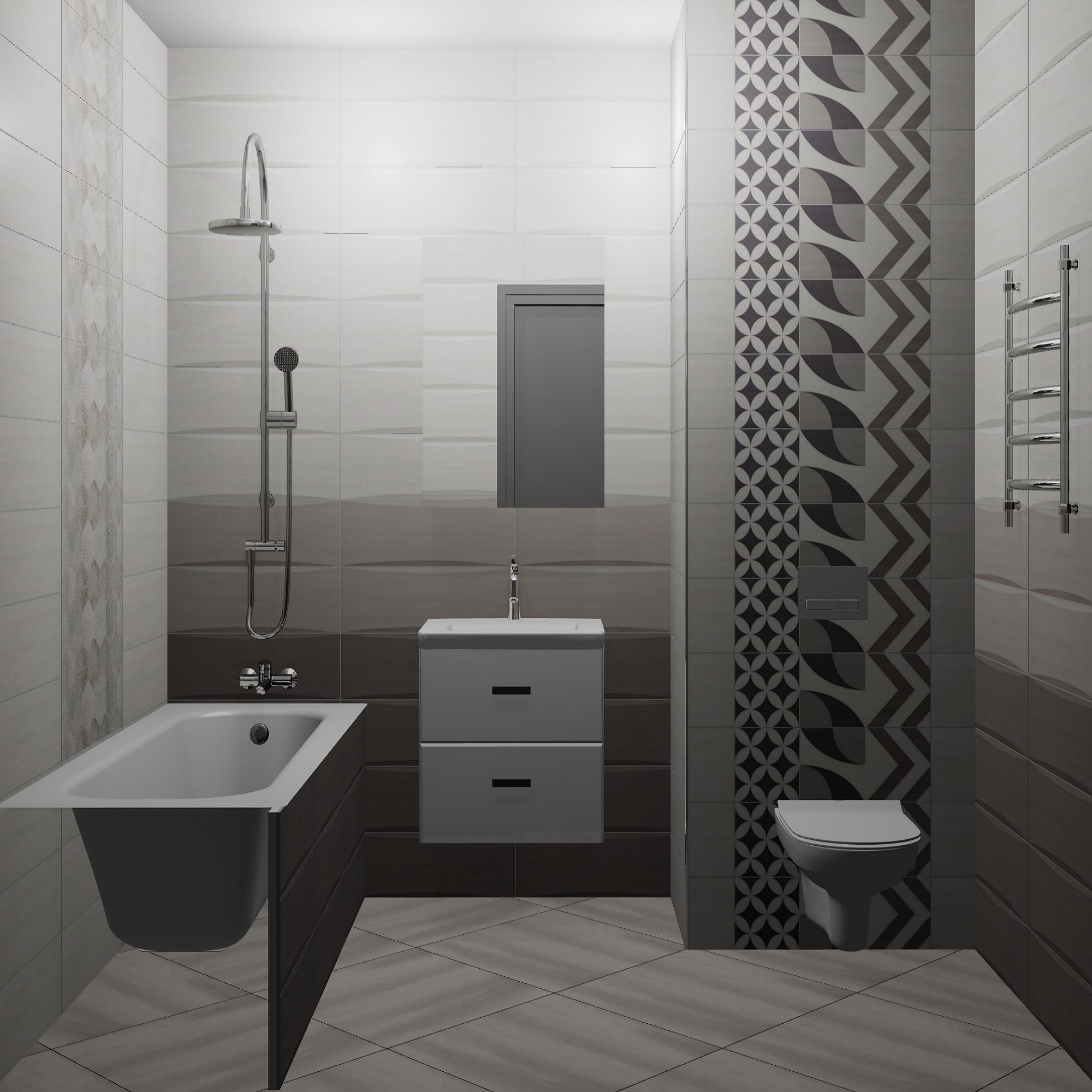 Прямая, под углом 45 градусов, вразбежку и т.п. — для определения наилучшего варианта раскладки.5. Дизайнер может показать Вам несколько вариантов раскладки плитки относительно углов разных стен и пола, а также перегородок, мебели и других элементов (при их наличии в проекте).