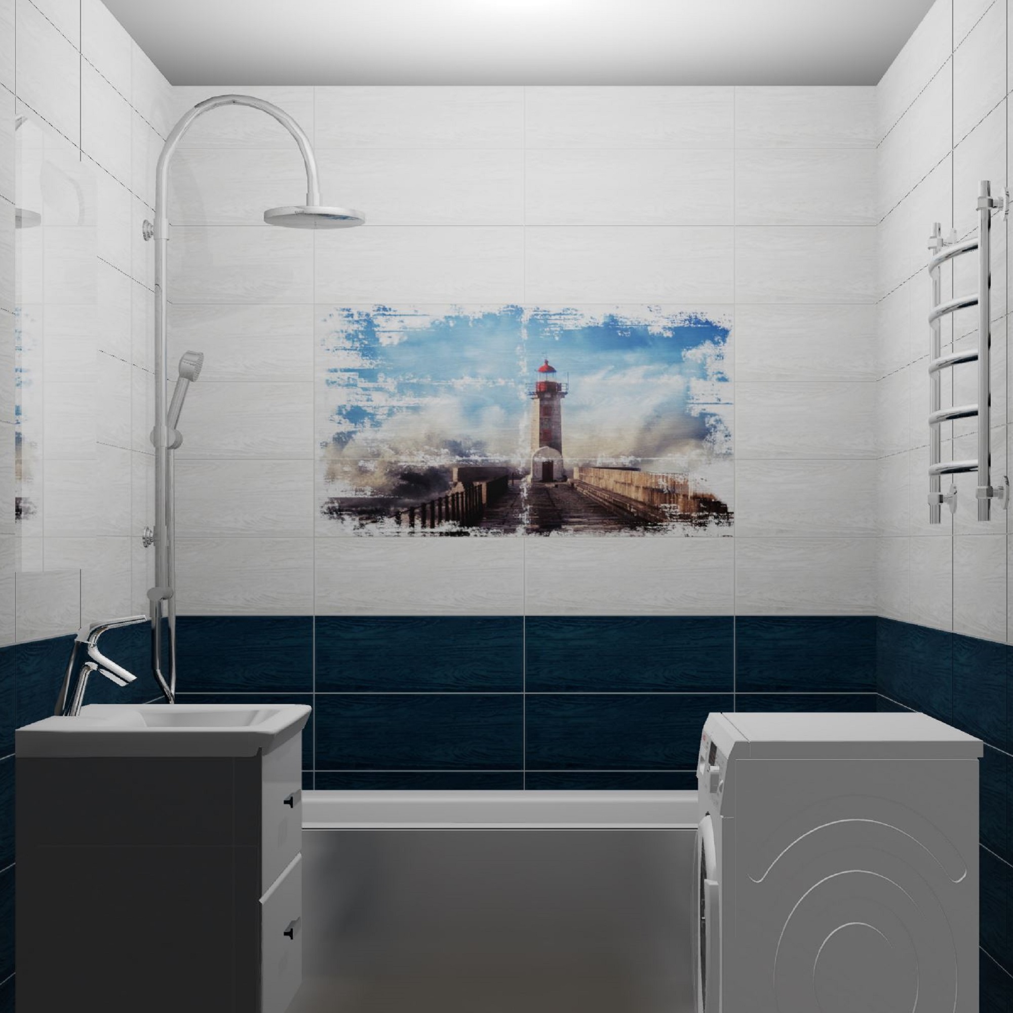 3. Дизайнер раскладывает выбранную керамическую плитку на стены и пол по Вашему желанию.