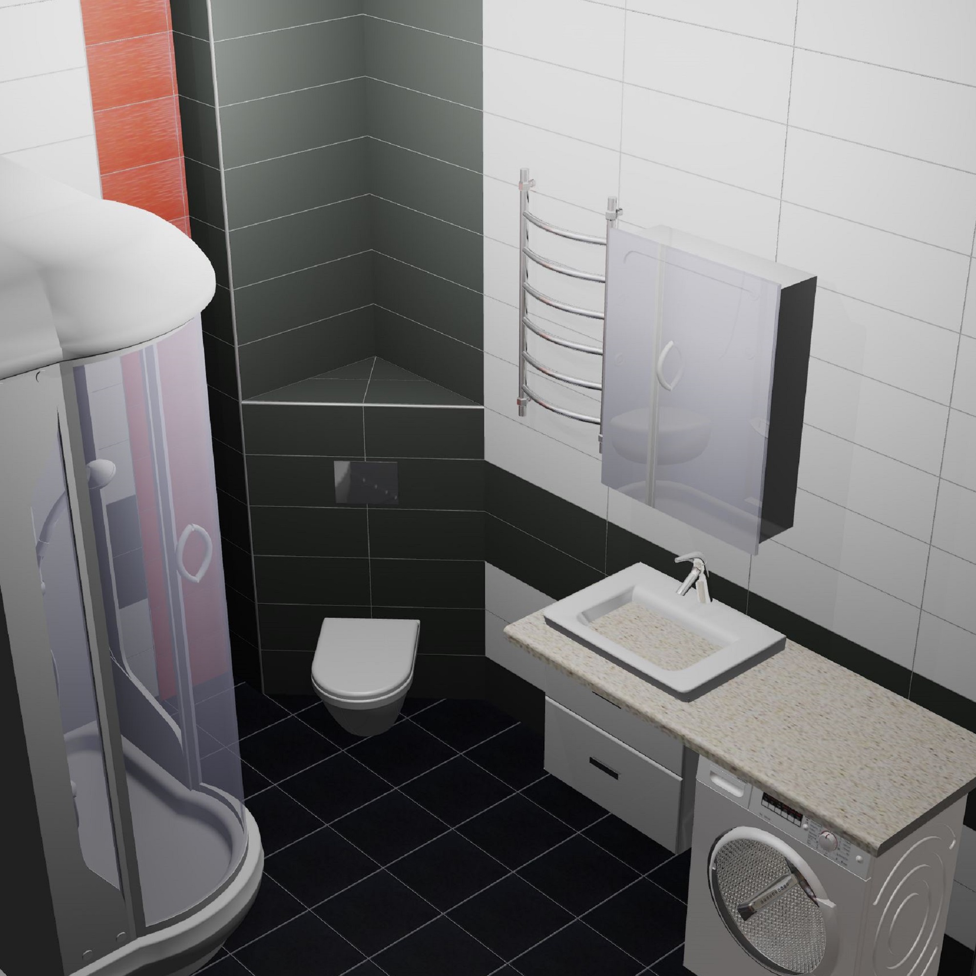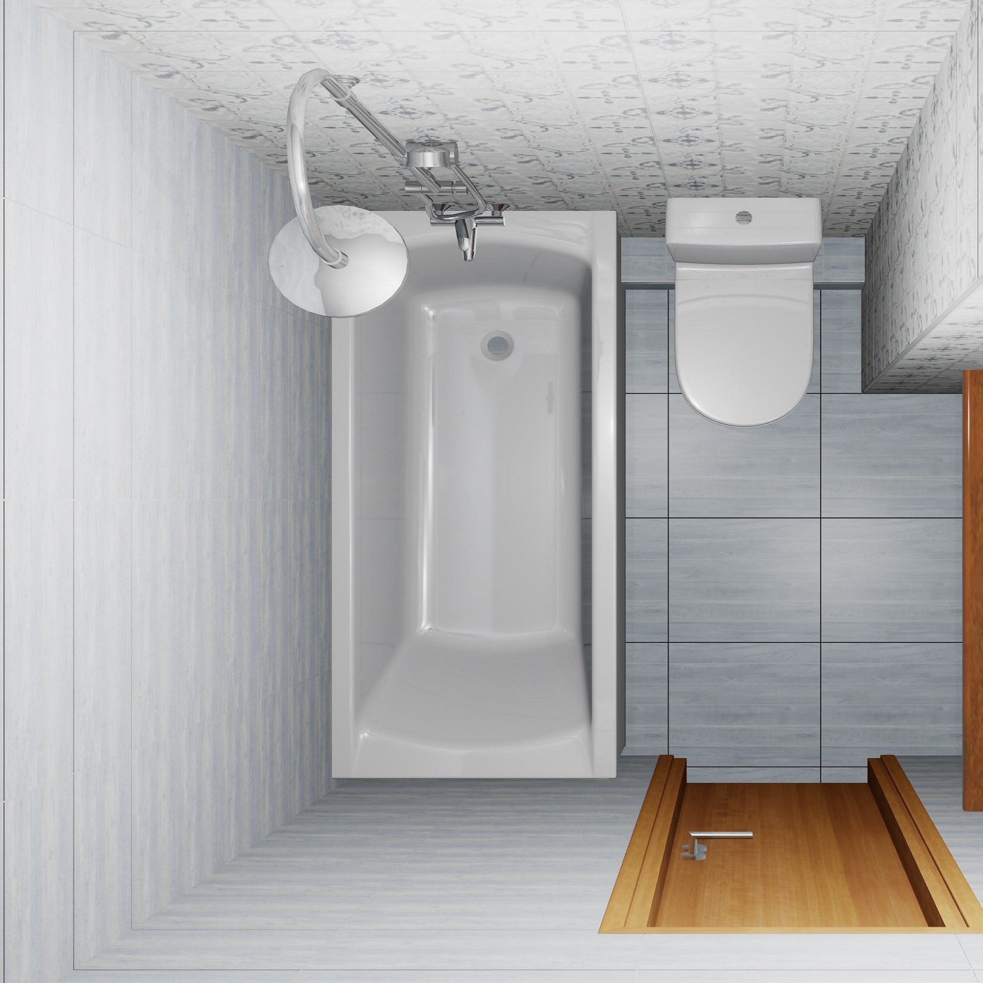 - Создается по шаблонам, с уже установленным стандартным сантехническим оборудованием, без выбора;