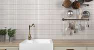 - Керамика Kit-Kat с рисунком - в полоску в стиле модерн, представлена в наиболее подходящем цвете - бежевый или белый;