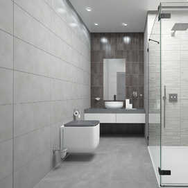- Плитка Fjord/Marble с рисунком - под мрамор в стиле модерн, представлена в наиболее подходящем цвете - светло-серый или серый;