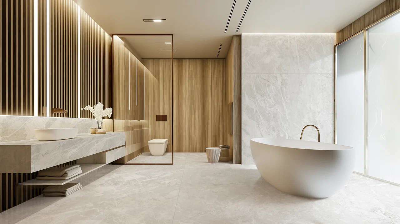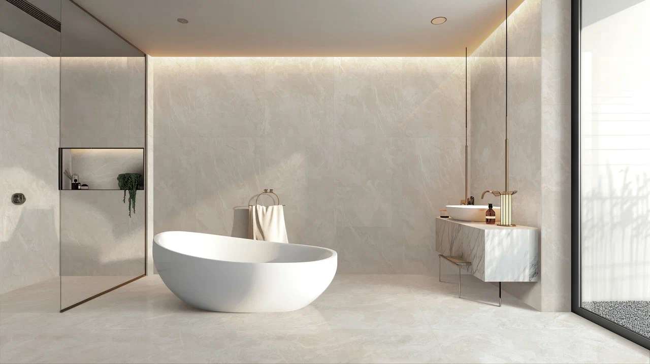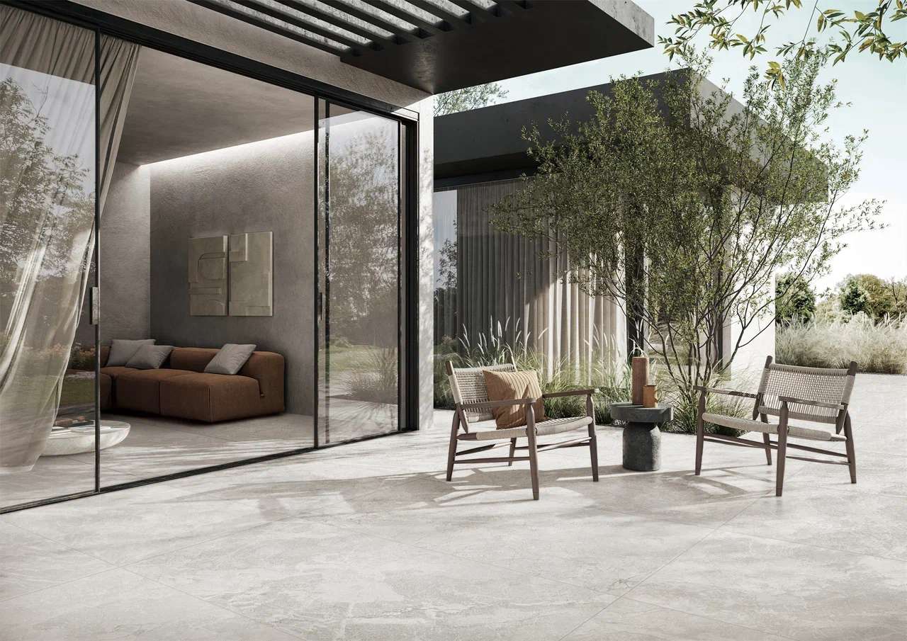 - Керамика Court Hymn представлена в наиболее подходящем цвете - бежевый или светло-серый;