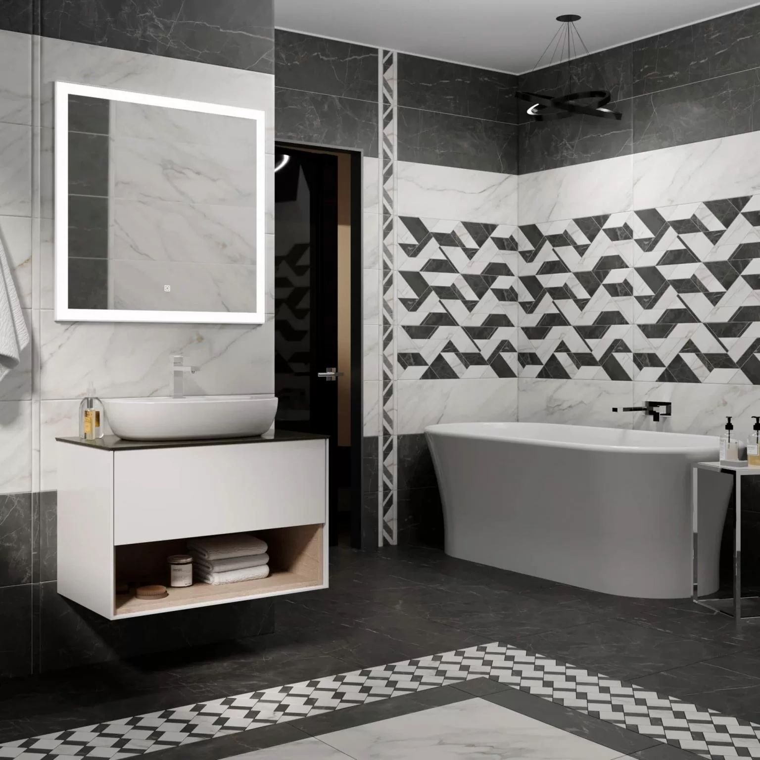 - Керамика Буонарроти с рисунком - под мрамор в стиле классический, представлена в наиболее подходящем цвете - светло-серый или серый;