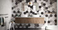- Керамика Бистро с рисунком - под мрамор в стиле пэчворк, представлена в наиболее подходящем цвете - бежевый или бежевый/кремовый;